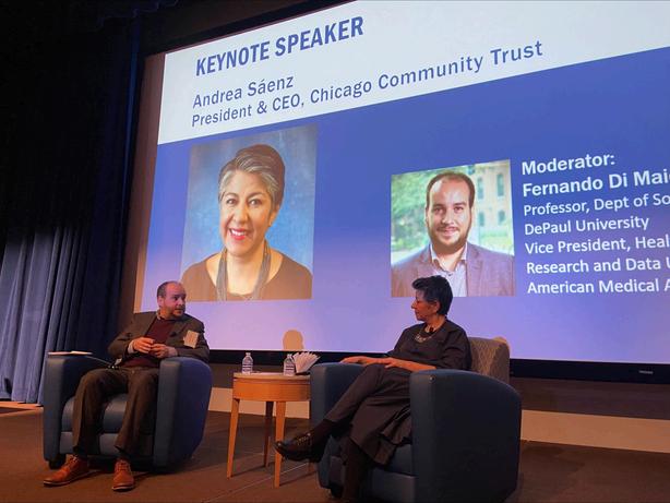 On Friday, January 31st, over 200 faculty and staff came together for the sixth annual, Innovation Day This year’s event, Connecting Ideas, Igniting Excellence, focused on bringing the DePaul community together to reimagine, refresh, and revitalize their research and creative activities, teaching, and/or department DePaul community members presented research, discussed perspectives on innovation, and made connections across disciplines The event featured keynote speaker Andrea Sáenz, President & CEO of the Chicago Community Trust, along with panels on Campus and Community in Dialogue, Creative Frontiers, and Entrepreneurial Thinking Across the Disciplines.