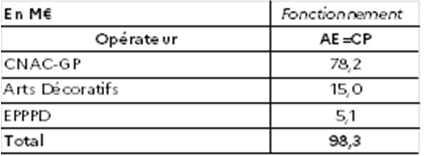Ces crédits sont destinés à l’Opérateur du patrimoine et des projets immobiliers de la culture (OPPIC). La justification au premier euro des crédits de l’OPPIC est détaillée dans la partie opérateurs du PAP. En application d’un principe de destination des crédits, ceux relatifs aux opérations d’investissement sous convention de mandat sont ventilés entre les différentes actions concourant à chacun des quatre programmes de la mission « Culture » et au programme 334 « Livre et industries culturelles » de la mission « Médias, livres et industries culturelles » (cf. actions concernées).