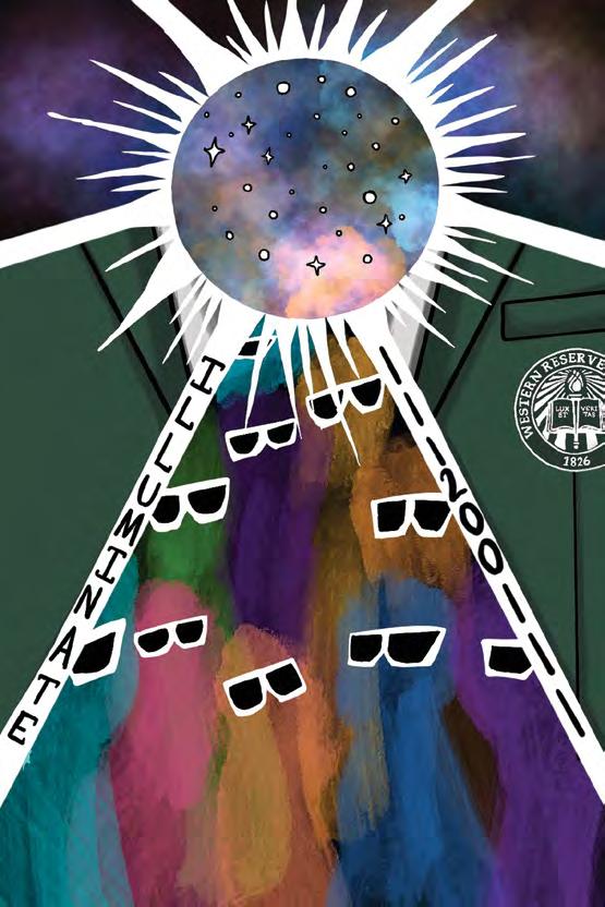 Our front cover features a photo from our Bicentennial Tree Illumination Ceremony. The tree, adorned with 75,000 lights, will flicker on every evening through our Bicentennial year, turning off promptly at 11 p.m. In the misty summer darkness, it almost feels like a lighthouse, calling us all home. It is a beacon, bold and bright, delivering most literally on the Reserve principles and promise of lux et veritas. We believe it is best viewed in person, perhaps with old friends. We hope you will all come and see it for yourself at our all-alumni Reunion Weekend 2026.