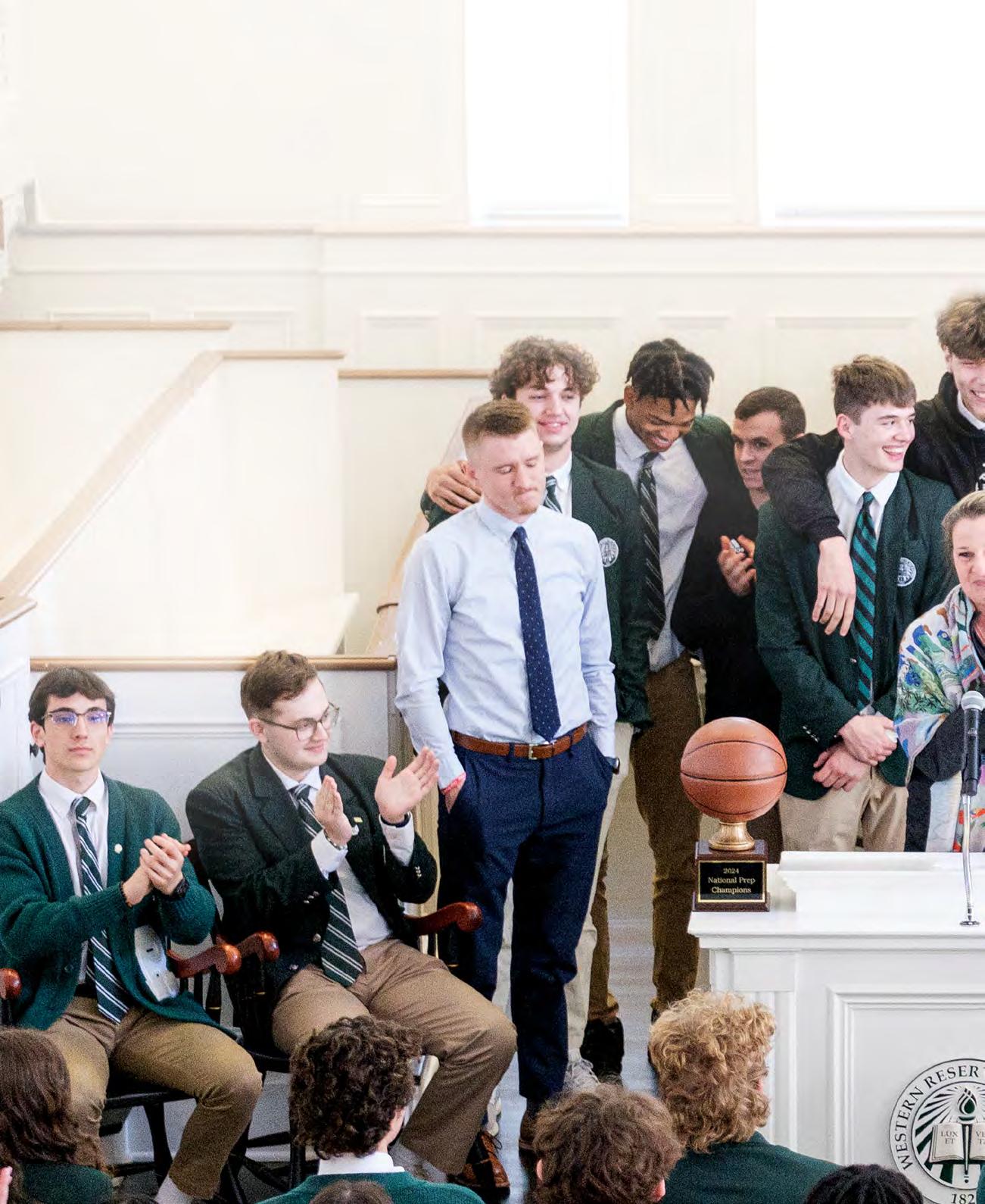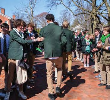 National Champions. Upon their return, they were greeted at the Victory Bell by Head of School Suzanne Walker Buck P ’24 and her husband, Johnny Buck, who hosted the team for a steak dinner at their home in Pierce House.
