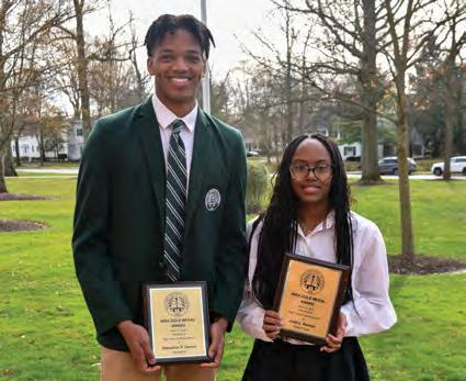 The Gold Medal is the highest honor in athletics at Western Reserve Academy. This year, the award was bestowed to track and field athlete Jada Kenner ’24, basketball athlete Damarius Owens ’24, volleyball athlete Donald Heddesheimer ’24 and lacrosse athlete Jared Maznik ’24. Most impressively, Jada earned the gold medal for both her winter Indoor Track season and the spring Track & Field season.