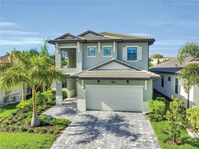 Charming waterfront condo located in Treviso Bay comes with a Sport & Social Membership! This popular D’Angelo floor plan in Avellino has it all with 2 bedrooms PLUS DEN, 2 full baths, 2 screened in lanais, impact resistant windows and sliders, vaulted ceilings, a private detached GARAGE plus a paved driveway which offers room for a second car. There are no condos above you and gorgeous lake views from your screened in rear lanai. The front lanai is expansive, yet cozy, and lives like a second family room. As a second floor residence, you even have views of another lake and fountain in the distance! Flowing open floor plan offers 1,454 sq ft under air with a kitchen that opens into the family and dining room. The den with French doors offers privacy, if working from home, or makes a comfortable third bedroom for guests. Built in 2015, special features include neutral tile flooring in the main areas, neutral paint in main areas (repainted in April 2024) updated light fixtures, granite kitchen counters and stainless steel appliances. Avellino has its own community pool, pickleball courts, grilling station and food truck. Additional amenities in Treviso include two clubhouses with indoor and outdoor dining options, a lagoon style pool with a bar and restaurant, social activities, fitness center with an onsite trainer, tennis & bocce, eight pickleball courts and a full service spa! Treviso Bay lifestyle also includes a 18-hole TPC championship golf course, driving range, putting green, 6 satellite pools & more. Just minutes from downtown Naples 5th Avenue and beaches.