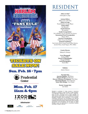 RESIDENT Editor-in-Chief Christopher A. Pape Assistant Editors Hillary Latos, John Friia Editors-at-Large Norah Bradford, George Wayne Culture Editor Joe Alexander Social Columnist Flo Anthony Family Correspondents Dr. Jo Webber, Dr. Joe Taravella, Jen Groover International Travel Correspondent Maxine Albert Interiors Correspondents Debbie Travin, Kate Bidinger Featured Contributors Ann Lawlor, Bob & Sandy Nesoff, ERnie Anastos, Jennifer Peleaz, Isaiah Negron, W.A. Miller