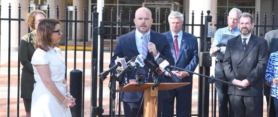 Bryan Tucker, vice president corporate communications for CSX, addresses the crowd at a Jan. 19 press conference as, L to R, council members Randy DeFoor, LeAnna Cumber, Matt Carlucci, Michael Boylan and Jewish Community Alliance CEO Adam Chaskin look on.