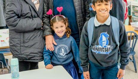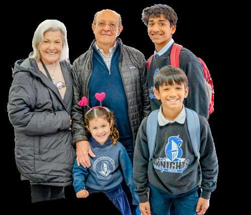Kindergartener Camila Wesling and fifth grader Nico Kallivayalil pose with their grandparents and eighth grader Luke Kallivayalil during Grandparents Day at Assumption Catholic School. The event, held as part of Catholic Schools Week, included a Mass for students in third through eighth grades, a performance by kindergarten through second grade students, courtyard refreshments, arts and crafts, and classroom visits.