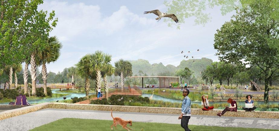 WSP is the design engineering firm for this $12.65 million project; Kiewitt is the construction contractor and C&ES is the construction engineering inspection firm. Funding is supported by a $5.18 million grant from the Florida Department of Environmental Protection’s Resilient Florida program grant, awarded to the City of Jacksonville in collaboration with Groundwork Jacksonville, and a $2.6 million grant awarded to Groundwork Jacksonville from the NOAA Fisheries Office of Habitat Conservation’s Community-based Restoration program. Remaining project costs, including remediation of contaminated soils from a former ash-dumping site, will be funded by the City of Jacksonville.
