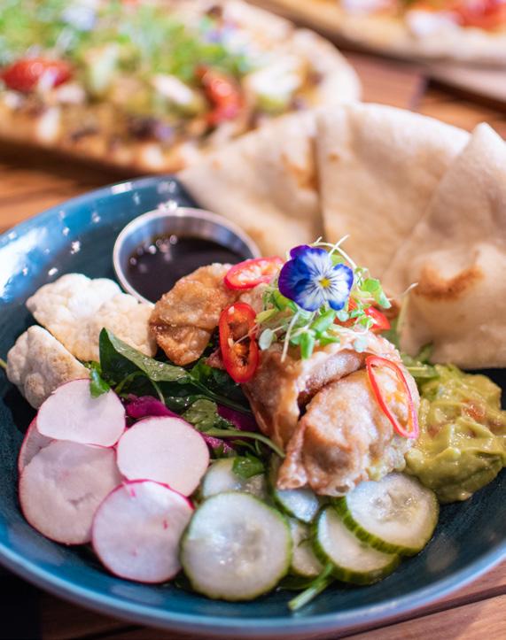 Mukavan kevyt salaattikulho, johon ruokaisuutta toivat kasvisdumplingit sekä herkulliset paloiksi leikatut valkosipulileivän siivut. Annos oli ruokaisa ja kooltaan sopiva, eikä vegaanisenakaan jättänyt vatsaa täyttämättä. Erityisen mukavan makumaailman tarjosi tahmeahko ja paksu teriyaki-kastike kasvisdumplingeille, joiden rapea kuori ja herkullinen sisus yllättivät maukkaudellaan. Salaatin balsamicoa huokuva vinaigrette toi mukavan lisän raikkaaseen vihersalaattiin, jonka kruunasi rapsakat retiisit. Raati antaa annokselle arvosanaksi 4/5.