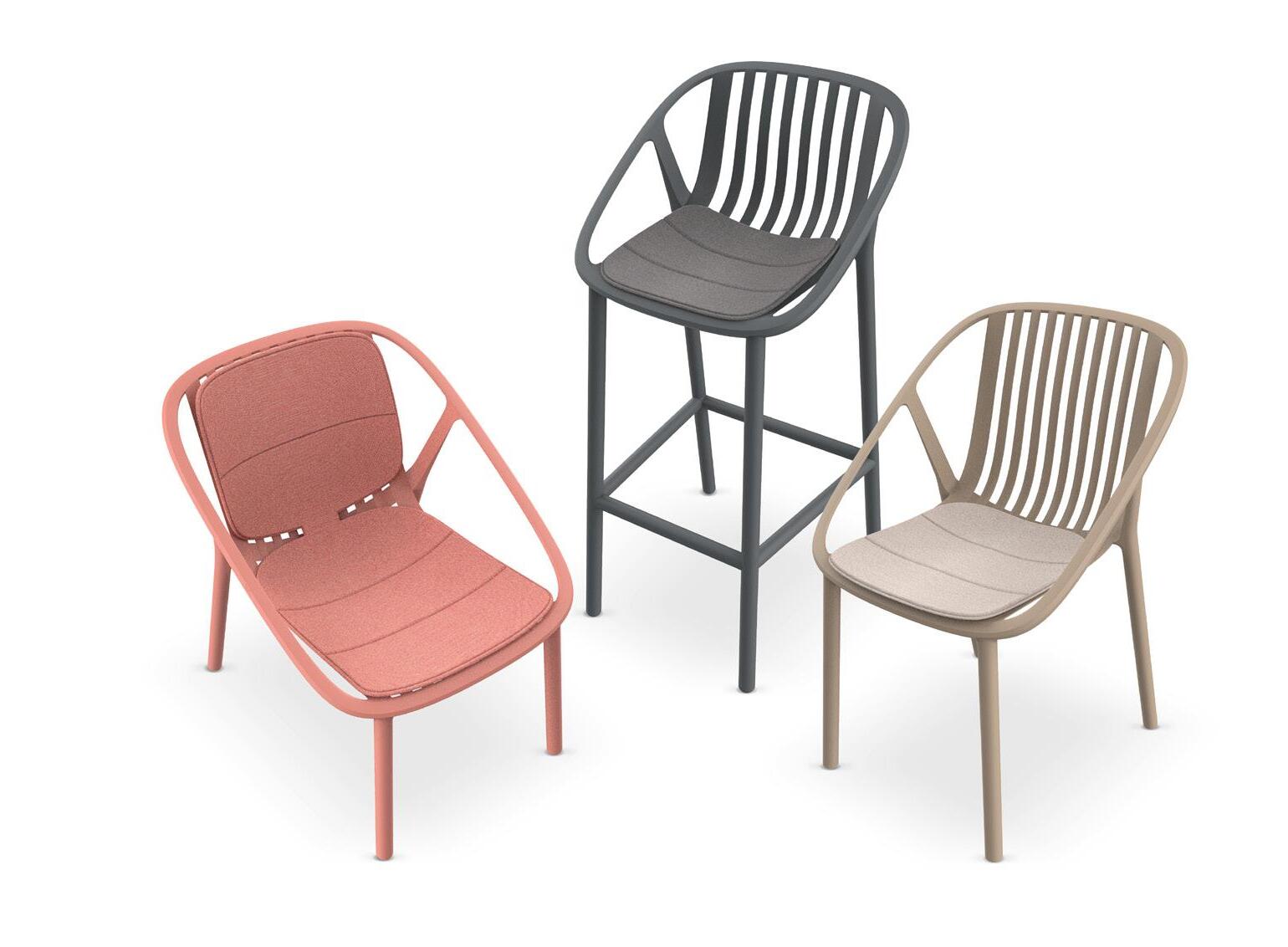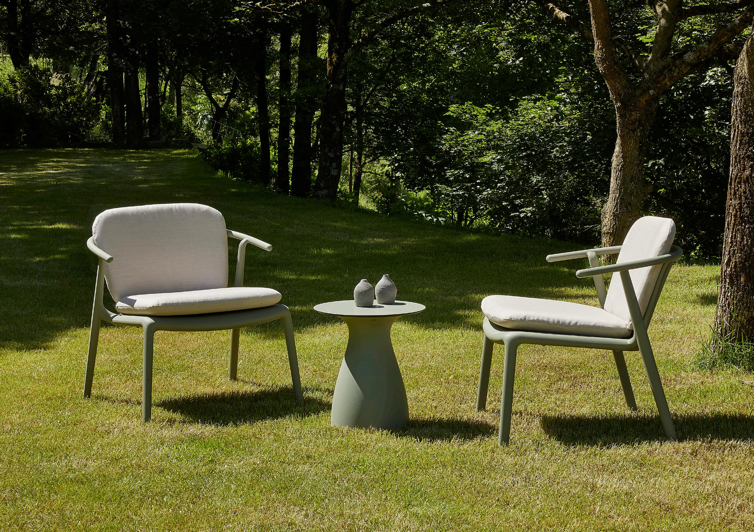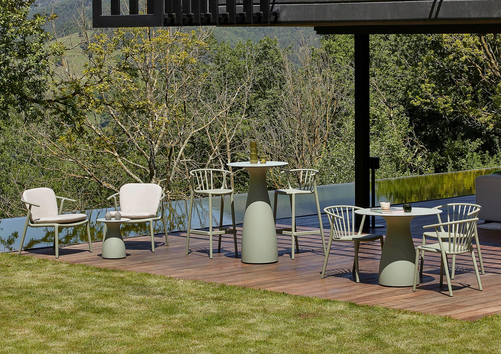 La colección Anou vuelve renovada, con mejoras que refuerzan su elegancia, confort y compromiso sostenible. La butaca incorpora carcasa de polipropileno reciclado postconsumo y estructura pintada, restistente y duradera para exterior.