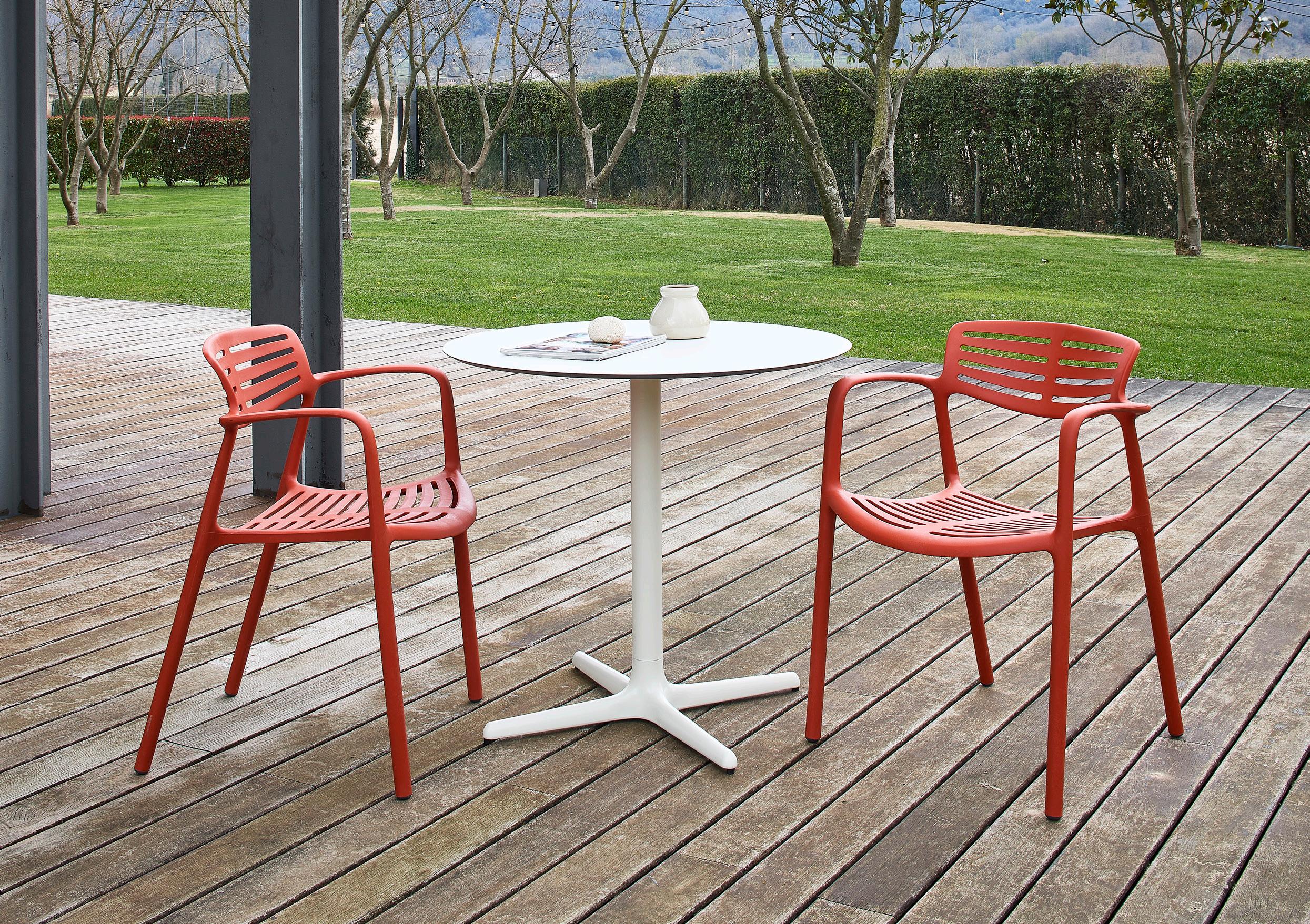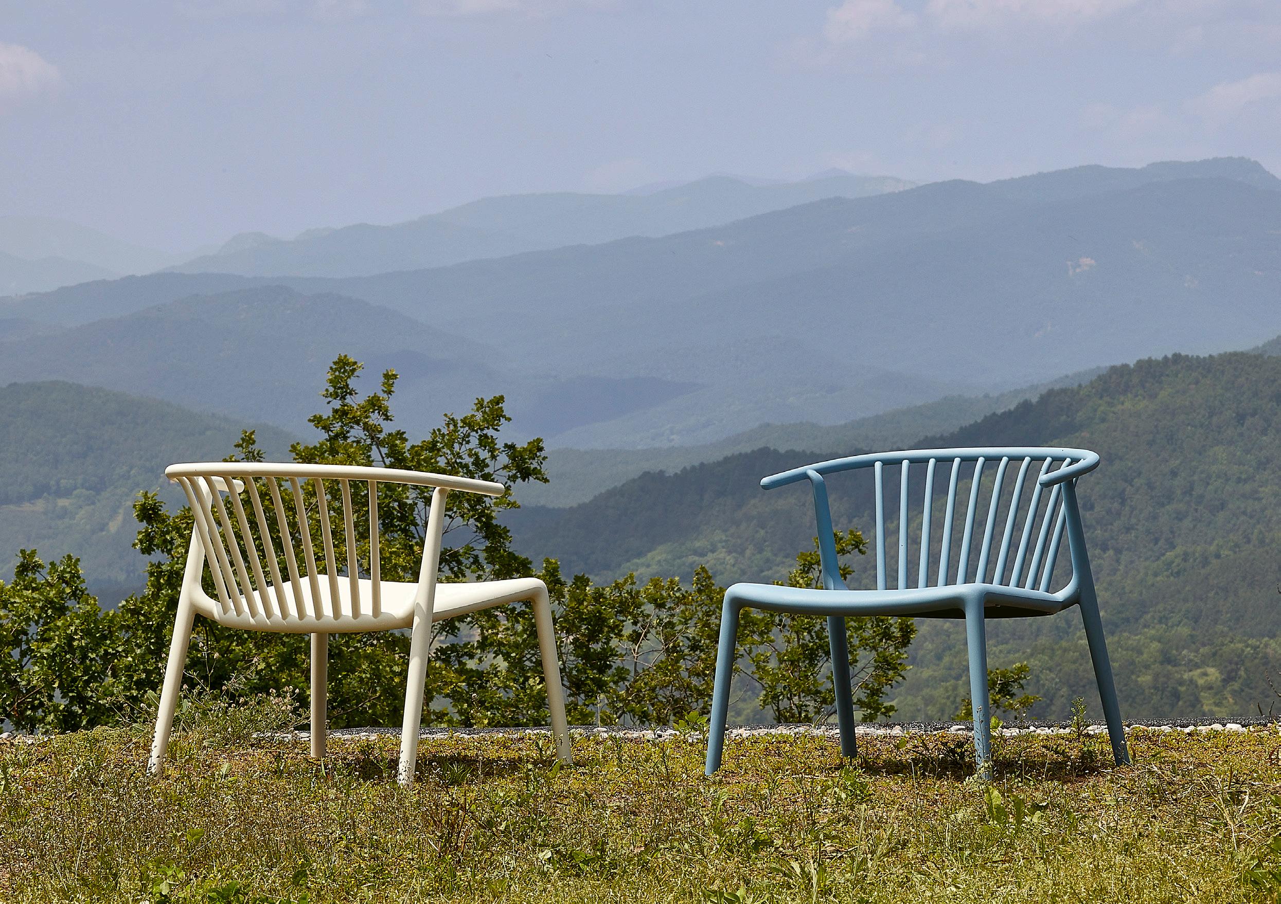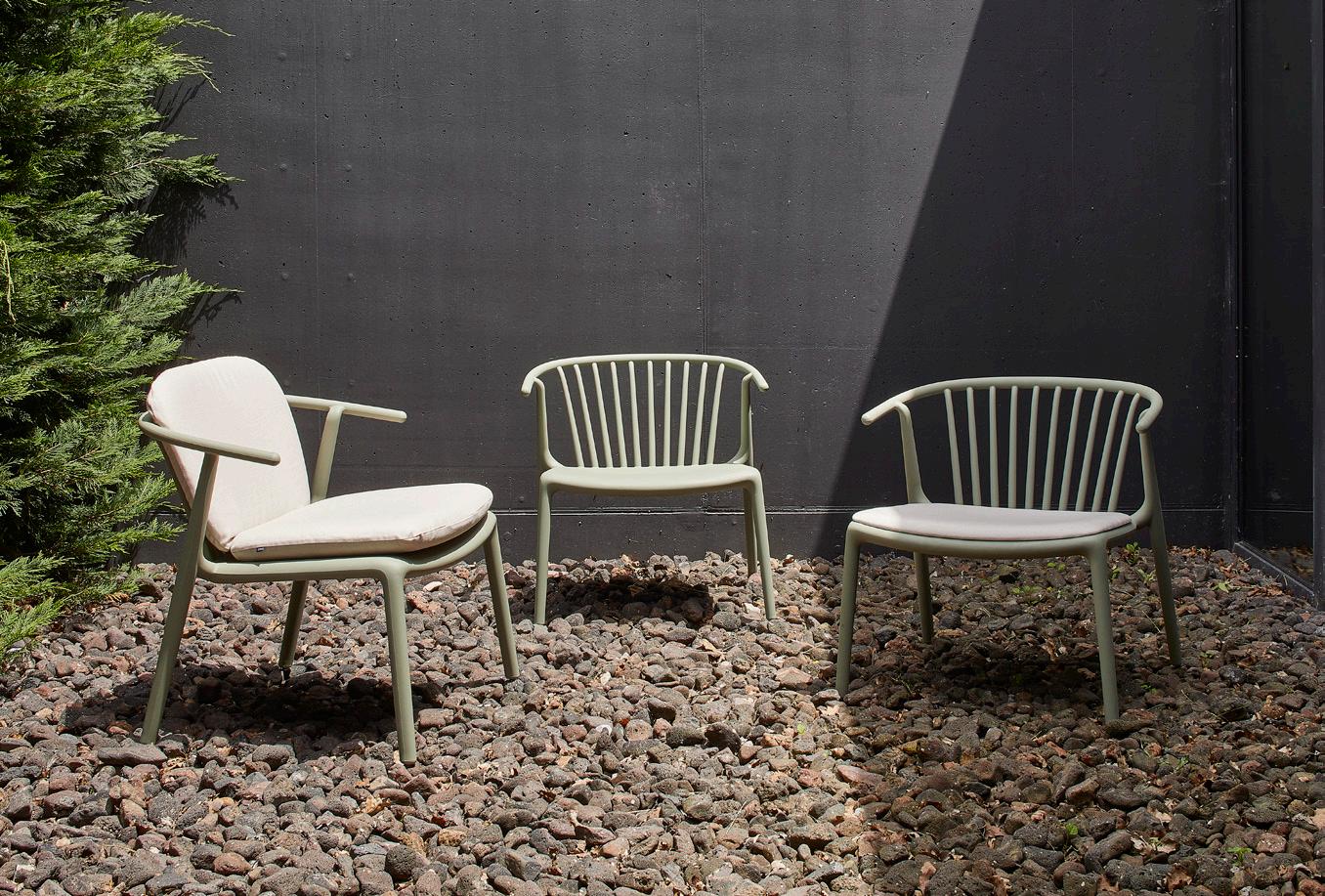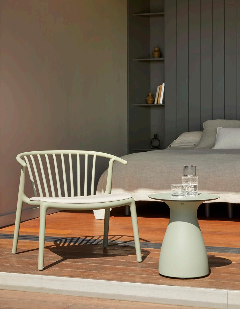 La colección Anou vuelve renovada, con mejoras que refuerzan su elegancia, confort y compromiso sostenible. La butaca incorpora carcasa de polipropileno reciclado postconsumo y estructura pintada, restistente y duradera para exterior.