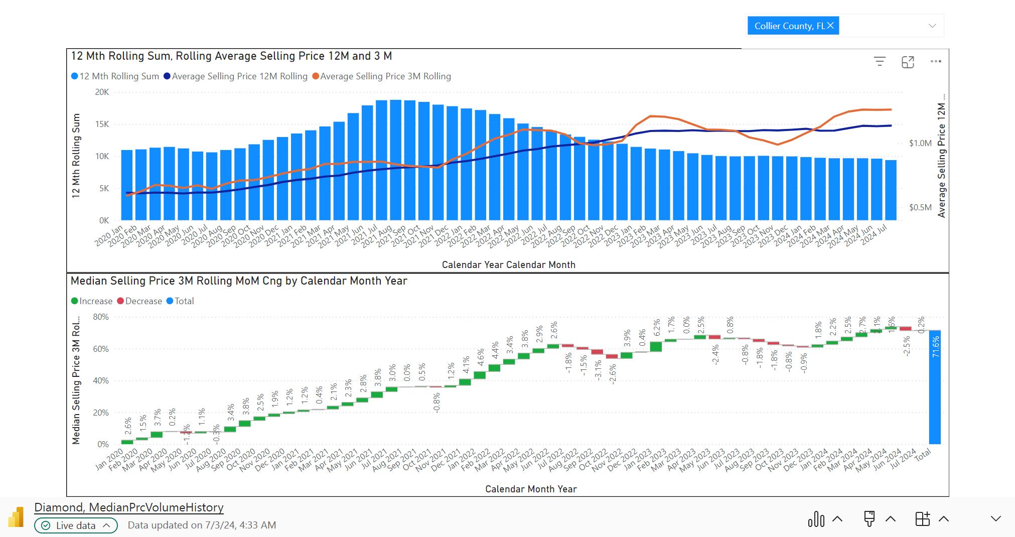 Collier County Rolling sales and Median price trends.