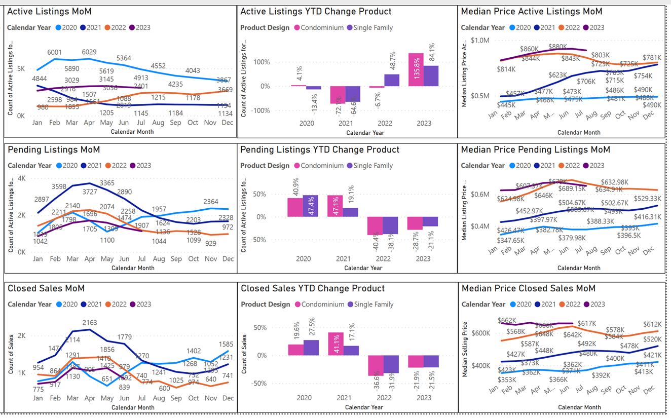 This set of graphs shows the activity by month for each property status, Active Listings, Pending Listings, Closed Sales.