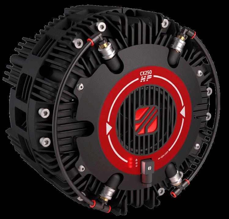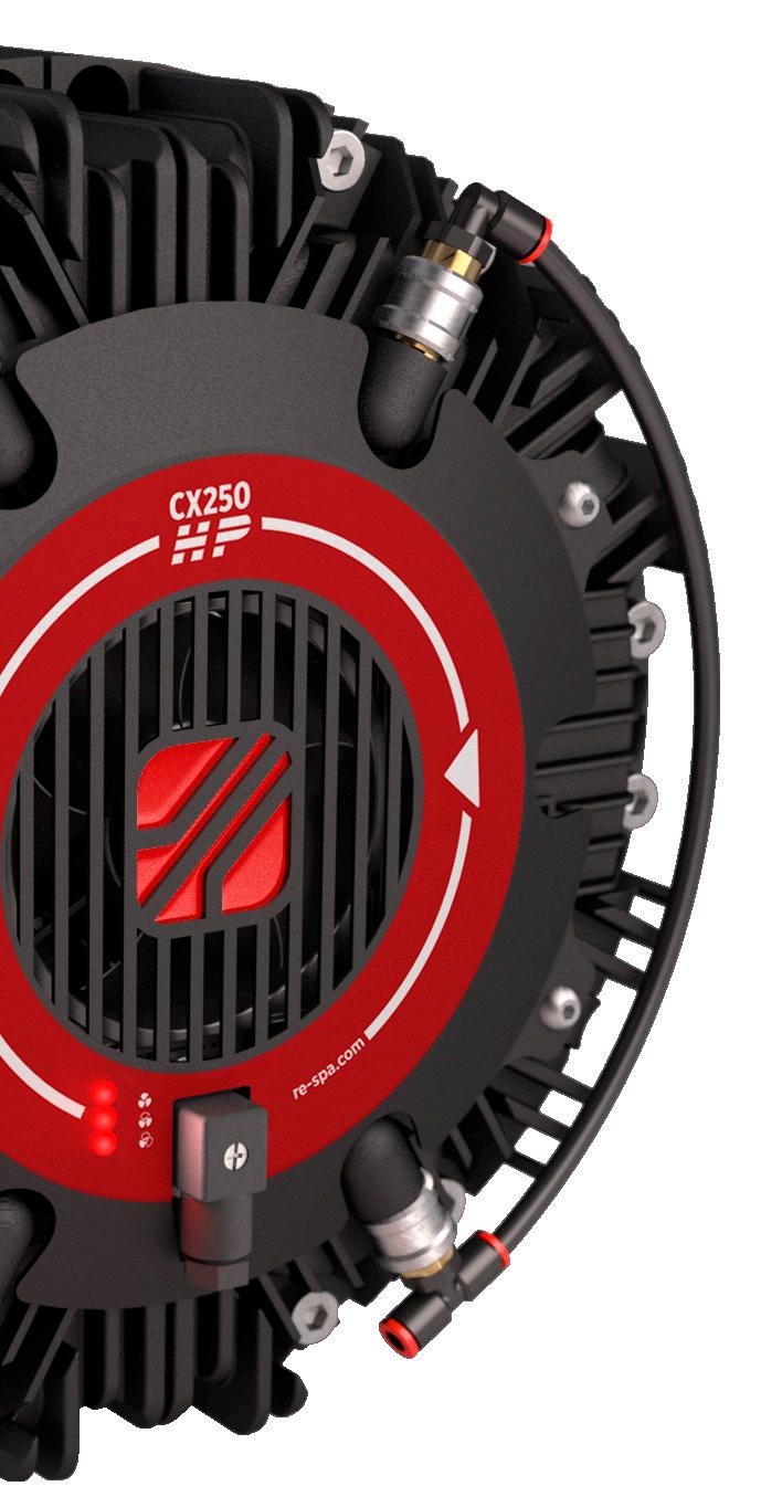 Il ventilatore High Performance ad elevato numero di giri permette una potenza di dissipazione maggiore andando ad aumentare il raffreddamento delle zone cruciali del freno e, dunque, la durata del sistema stesso. Disponibile per le taglie CX.250 e CX.300, conferisce al freno maggior compattezza in quanto viene integrato nella campana.