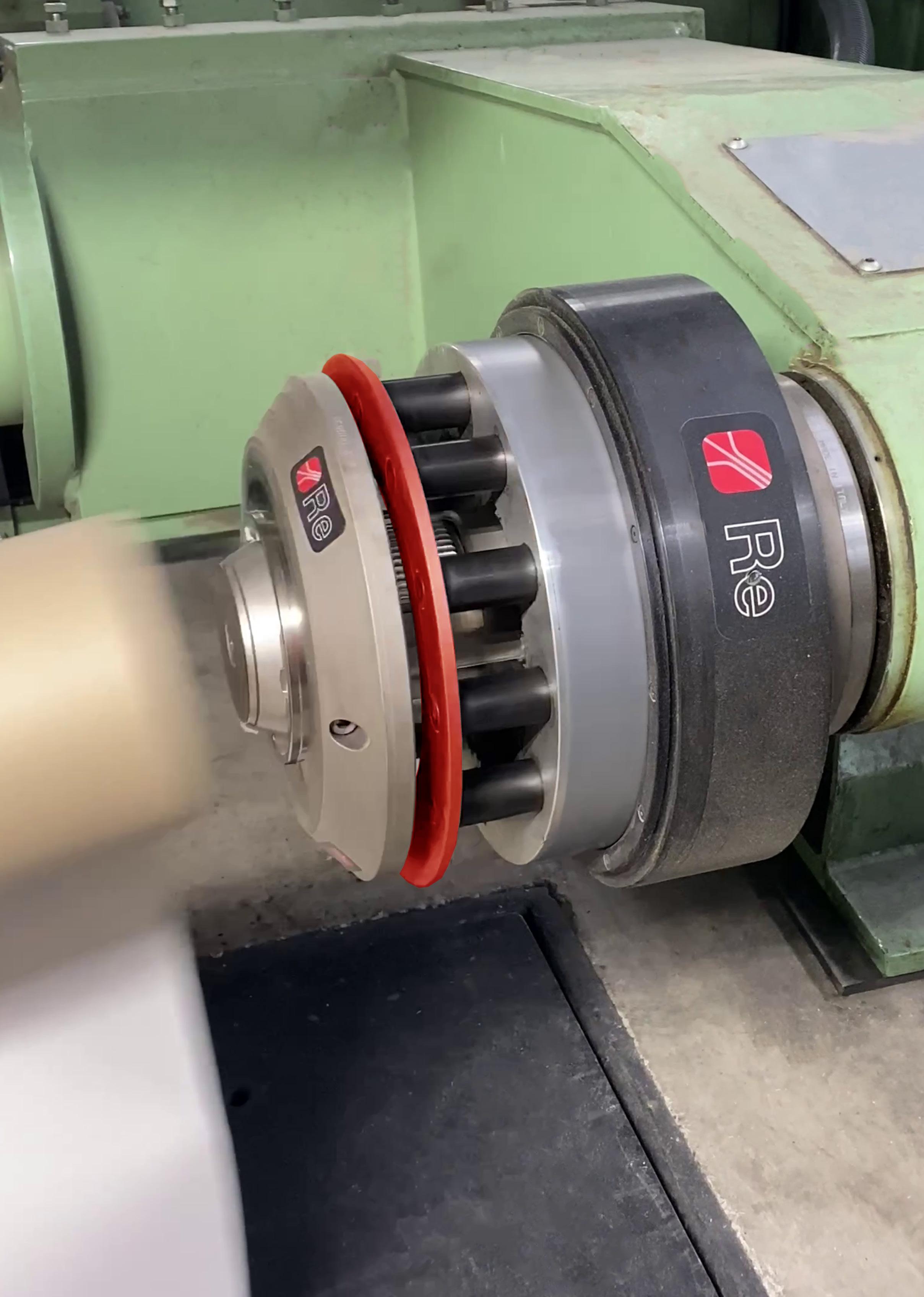 Rotomatic is the new patented core chuck that combines the quality and technology of the Re torque activated core chucks with a telescopic pneumatic ejector concentric to the core chuck. The roll ejection system RotoMatic has been designed to solve problems of paper waste and, moreover, to eliminate the problems of unlocking the reels during their ejection.