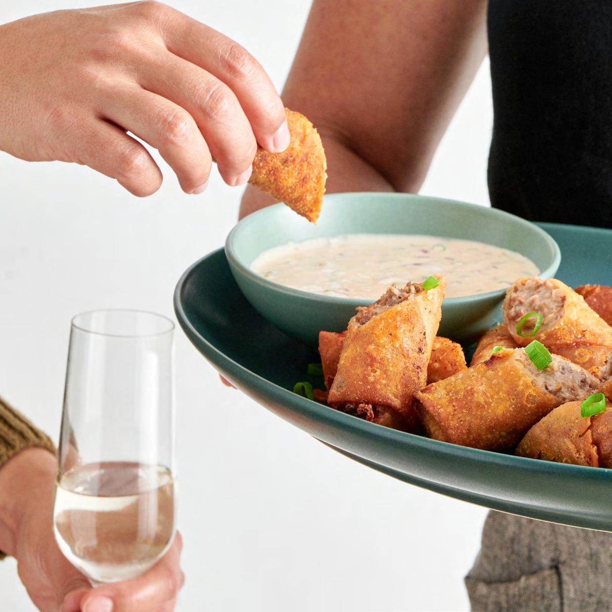 Consider fry-and-serve egg rolls from Entice. These efficient apps are stuffed with a rich, hearty Philly cheesesteak filling and then frozen to last. Simply drop in the fryer for one to two minutes and guests will be clamoring for classic, dippable cheesesteak taste in a handheld egg roll casing. Include roasted jalapeño queso or other dipping sauces that fit your concept.