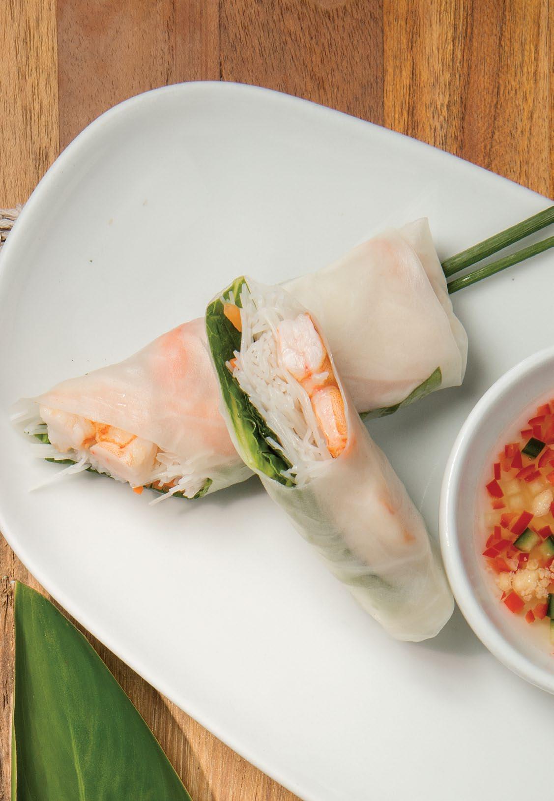 (2 unidades) Camarones con pasta vermicelli de arroz, lechuga, hierbas y zanahoria. Servidos con salsa vietnamita con nam-pla y maní. $28.900