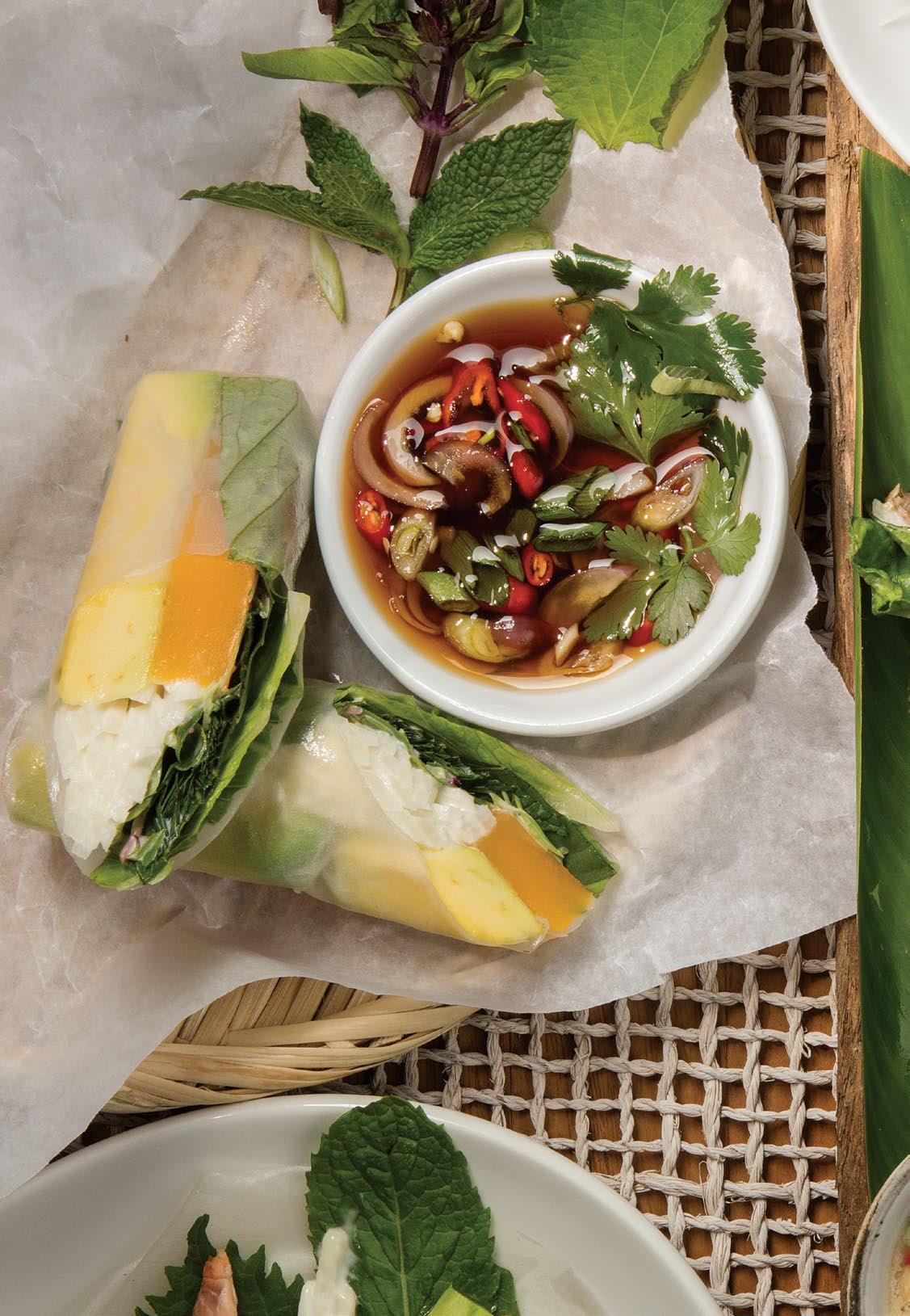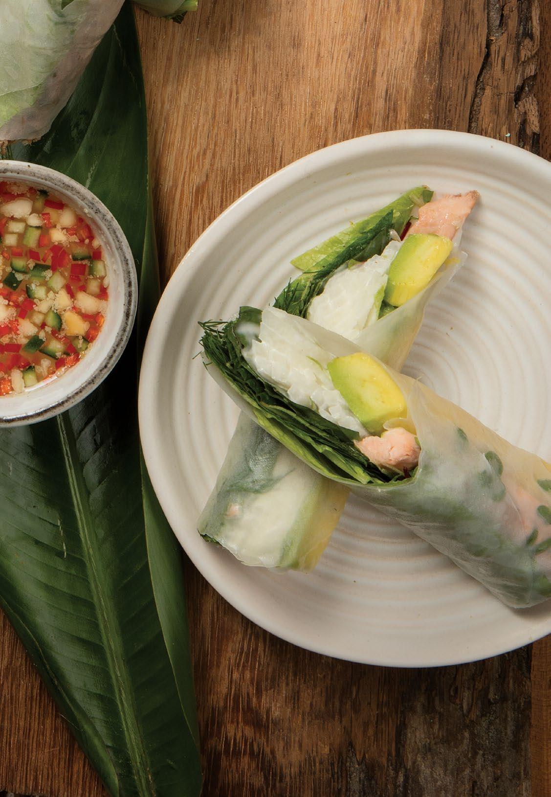 (2 unidades) Trucha ahumada, lechuga, jícama remoulade, mayonesa, aguacate, hierbas y germinados.Salsa vietnamita con nam-pla y maní. $31.900