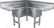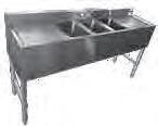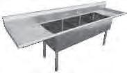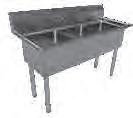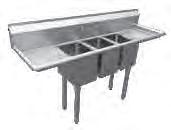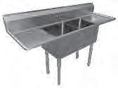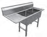 PA1622 - Two 17" x 17" x 12" deep compartments with right drainboard. Overall: 54 1 2"W x 22 1⁄2"D x 43 3⁄4"H. $619.00 PA1623 - Two 17" x 17" x