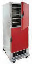 Clear view tempered glass on all sides, with serverside easy access swing door, digital adjustable thermostat and humidity control. 4-tier round rack continuously rotates – rotation stops when door is opened. Temp. range: 89°F to 194°F.