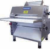 Two 20" synthetic rollers sheets up to 600 pieces of dough per hour. Front operation with adjustable speed, safety sensors, removable spring loaded scrapers, and large hopper.