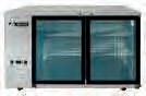 Pass-thru. Tempered glass doors and sides. Adjustable thermostat. Three 13 1 2" x 13 1⁄2" adjustable racks. 16"W x 16"D x 25 1⁄2"H. 120V. BU1040 3-year warranty on all parts