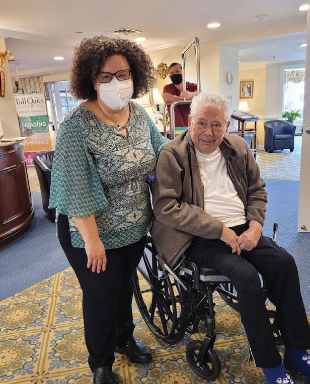Resident Ambassadors Margaret Macedonia and Jim Fowler prepare to welcome the newest addition to the Tall Oaks family.
