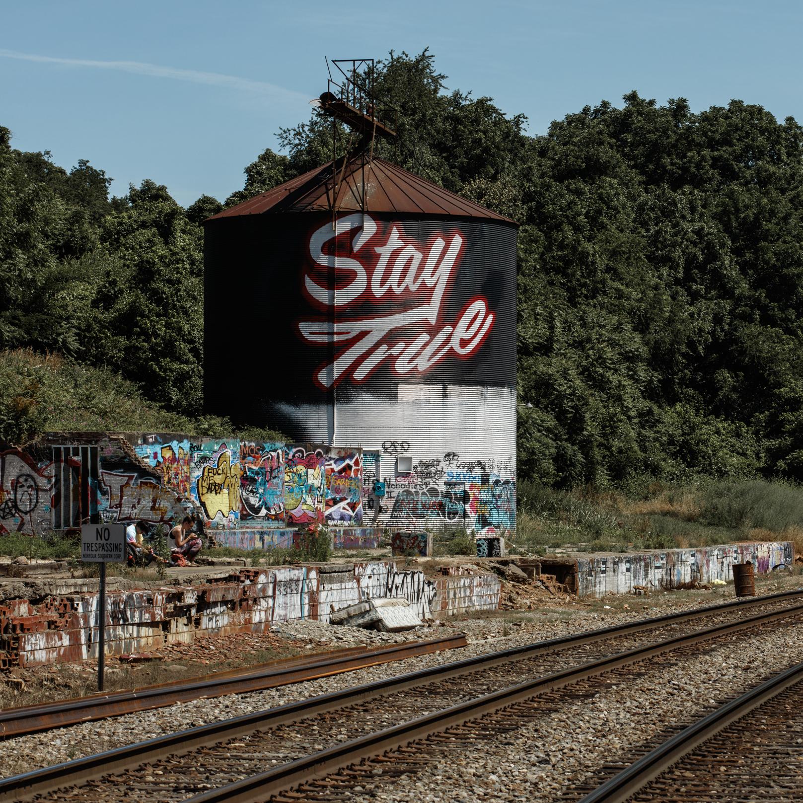 Anyone who’s driven through Asheville, North Carolina has likely noticed the old silo located by the water in the River Arts District with “Stay True” graffiti artfully across the front. The art piece has become a staple image of Asheville, and its history and inception have become an iconic spot for locals and visitors.