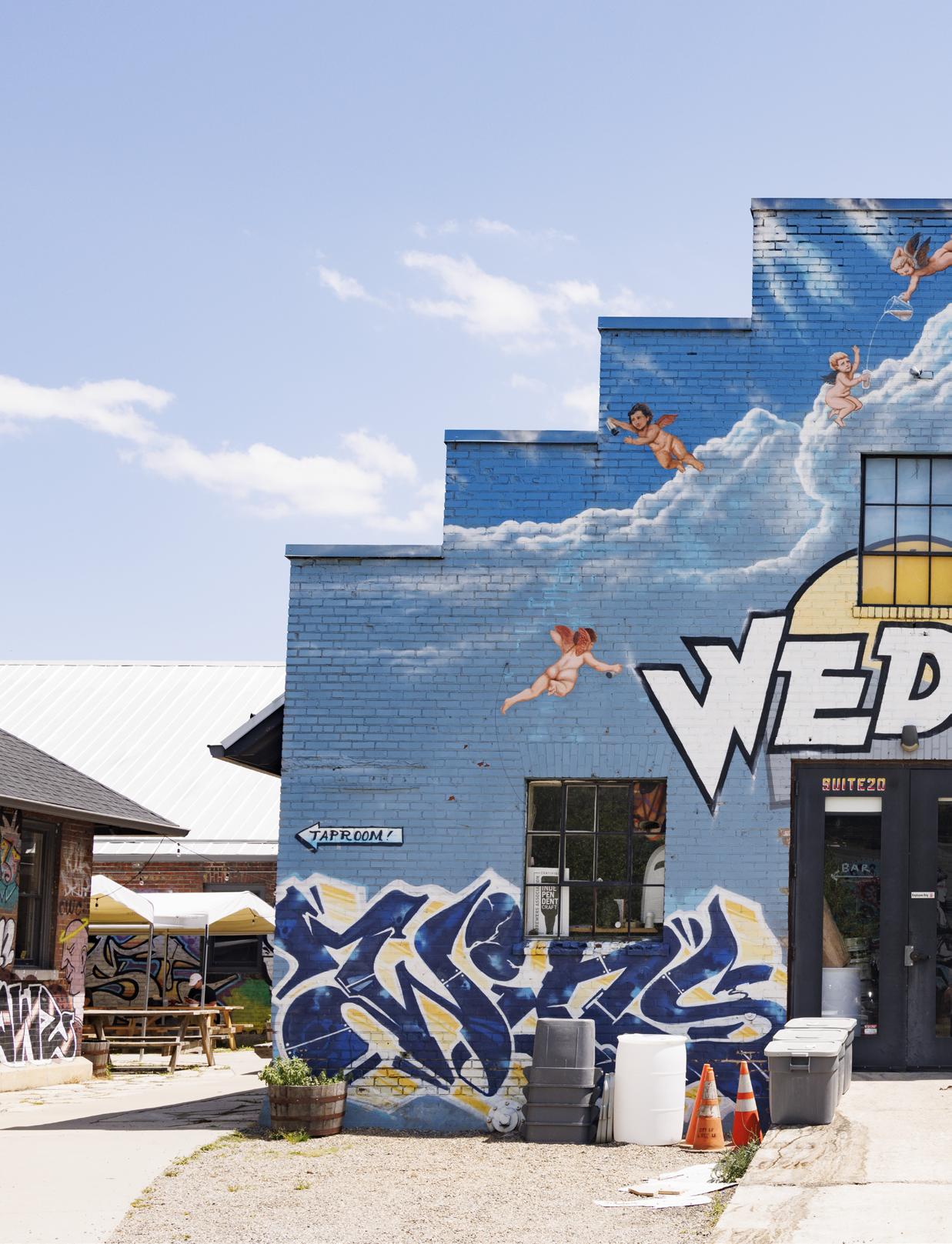 Artist Ian Wilkinson’s beautiful paintings can be seen all through the arts district. This mural was commissioned by Spicer Greene Jewelers