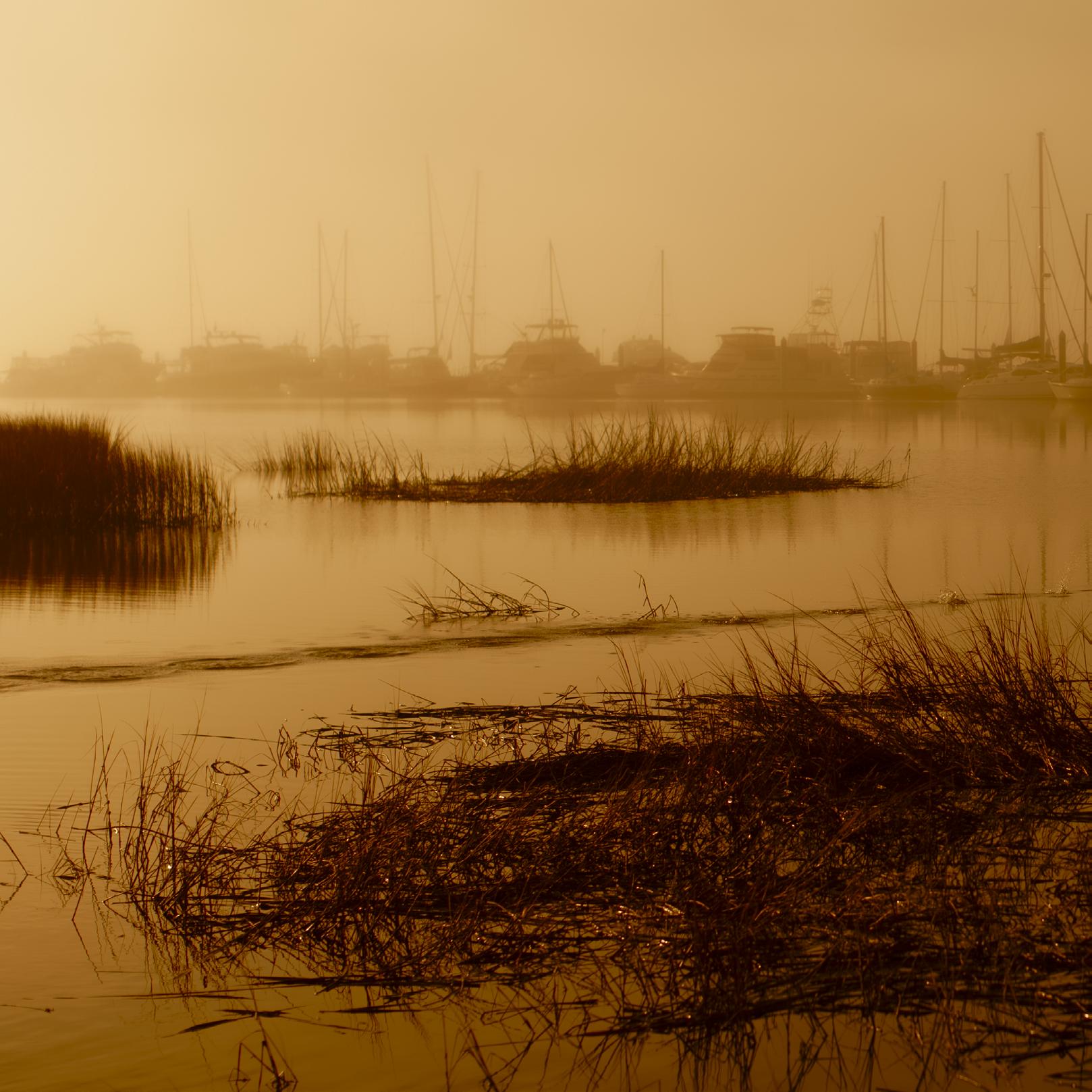 Fog over water is magical. The camera allows us to freeze a moment and remember. Looking west towards the sale mast, one lone bird glided through just inches from the calm surface.