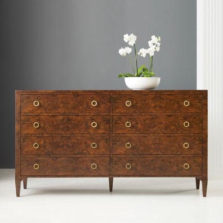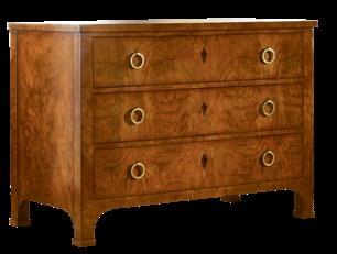 Traditional beauty is always in fashion, and the luxurious combination of walnut burl and satinwood inlay with meticulously carved wood and antique-inspired hardware is truly timeless.