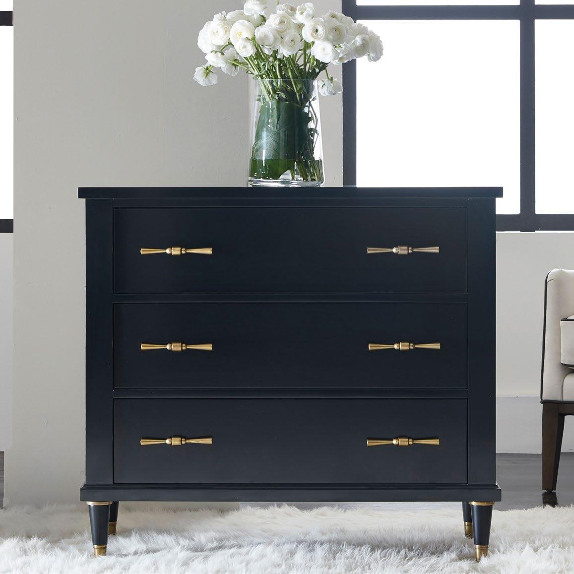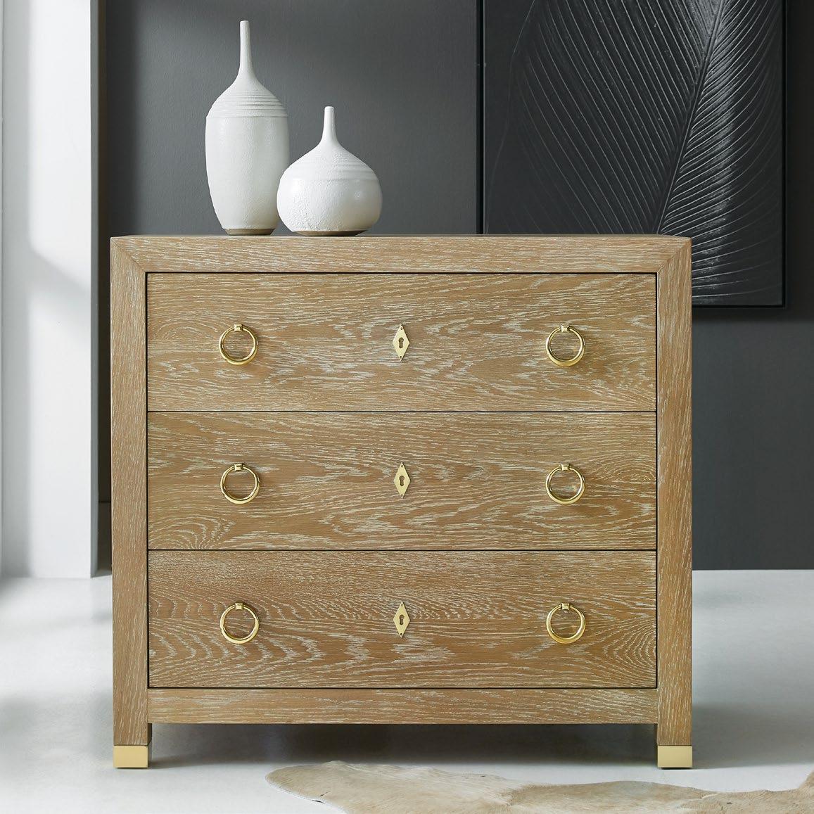 THE THREE DRAWER CHEST ON LEGS WAS THE PERFECT SCALE AND HAD THE CLEAN LINES WE WANTED FOR THE ROOM.