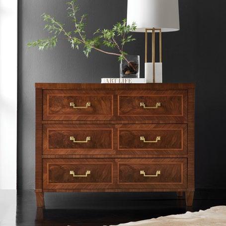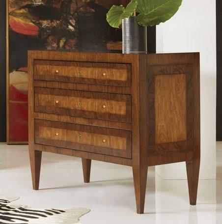 From the fine craftsmanship of traditional inlay to the pleasing combination of walnut and olive ash burl and solid brass accents, this chest is a modern masterpiece.
