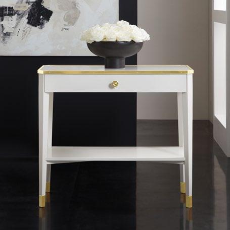 Elegant and refined, this slim bedside table stands out in any space with a classic combination of brass and a white painted finish.
