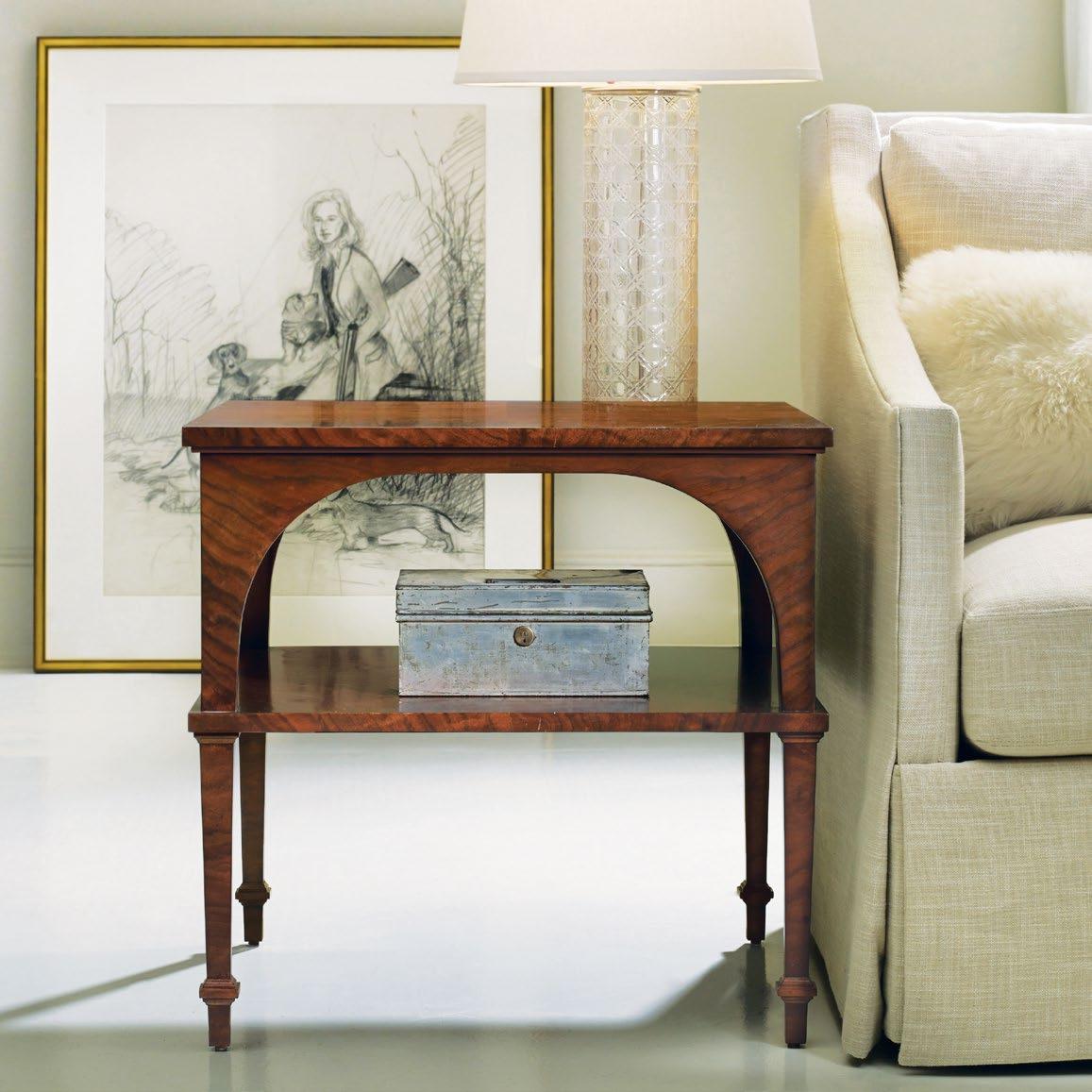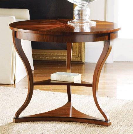 This classic end table adds a double dose of beauty to the living room, with a round top and convenient lower shelf that showcases the elegance of walnut accented by polished brass.