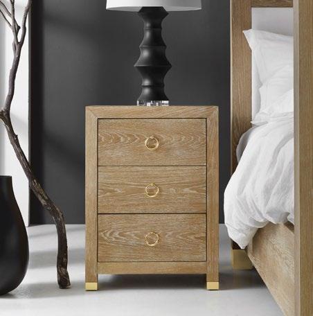 Organic style meets modern elegance in this three drawer bedside chest, featuring the combination of polished brass accents with the appealing warmth and texture of natural oak wood veneer.