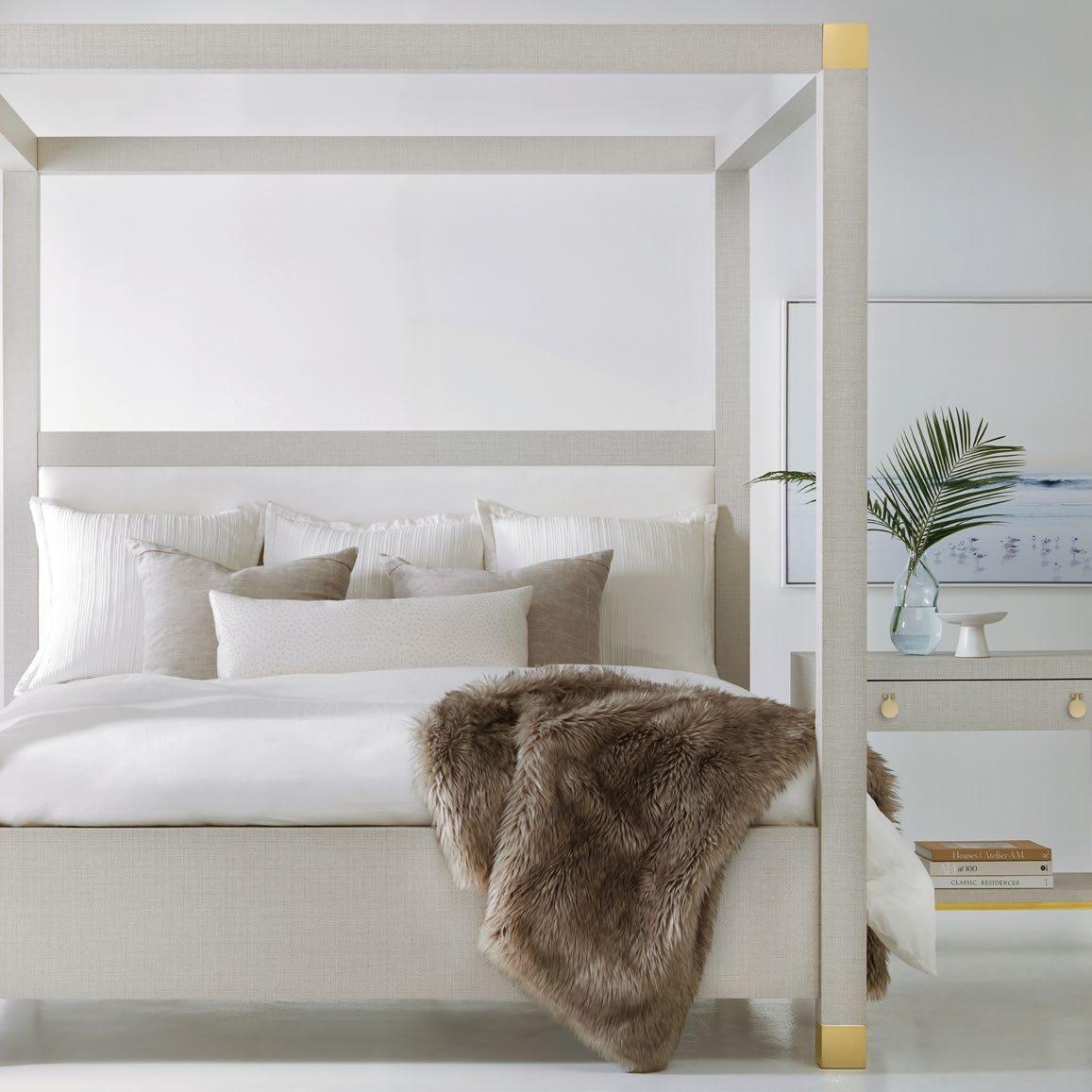 THE COVINGTON POSTER BED EMBODIED EVERYTHING THAT THE CLIENT ENVISIONED IN THEIR PRIMARY SUITE. THE CLIENT REALLY LOVED THE IDEA OF A 4 POSTER BED, BUT DID NOT WANT IT TO FEEL HEAVY NOR DID THEY WANT ALL GOLD. THE COVINGTON POSTER BED GAVE THEM THE OPTION TO ADD A LITTLE BIT OF GOLD ACCENT ON THE BED, BUT GAVE THE LIGHT FEEL THEY WERE LOOKING FOR.