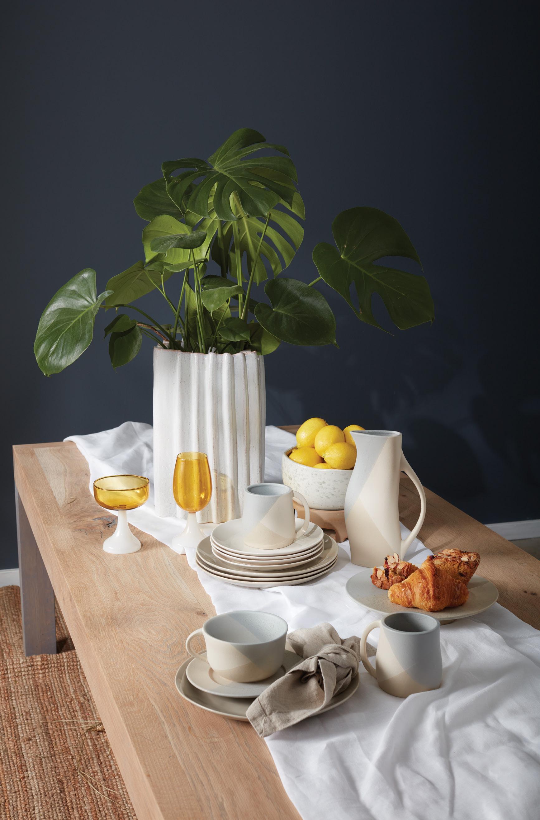 Imagining who might inhabit this space, Kate thinks of “someone fabulous, obviously!” For her, the inspiration was less about who might live there and more about the feelings the space might evoke. A warm, comfortably chic environment was the ultimate goal. The warm wood grain of the Theory End Table and Cocktail Table join a large collection of artisan-style ceramics in adding an organic feel to the space. One of Kate’s favorite pieces is the Grady Sofa, upholstered in a strikingly geometric patterned fabric. “The clean lines and tailored details are so perfectly designed to handle a fun fabric…it’s such a versatile piece,” she says. While bold and exciting, Kate’s My Rowe Design is also a welcome breath of fresh air. “In a world where content and media are constantly thrown at us,” says Kate, “to get a second or two from someone where [people] just stop and ponder a space… that’s design gold.”