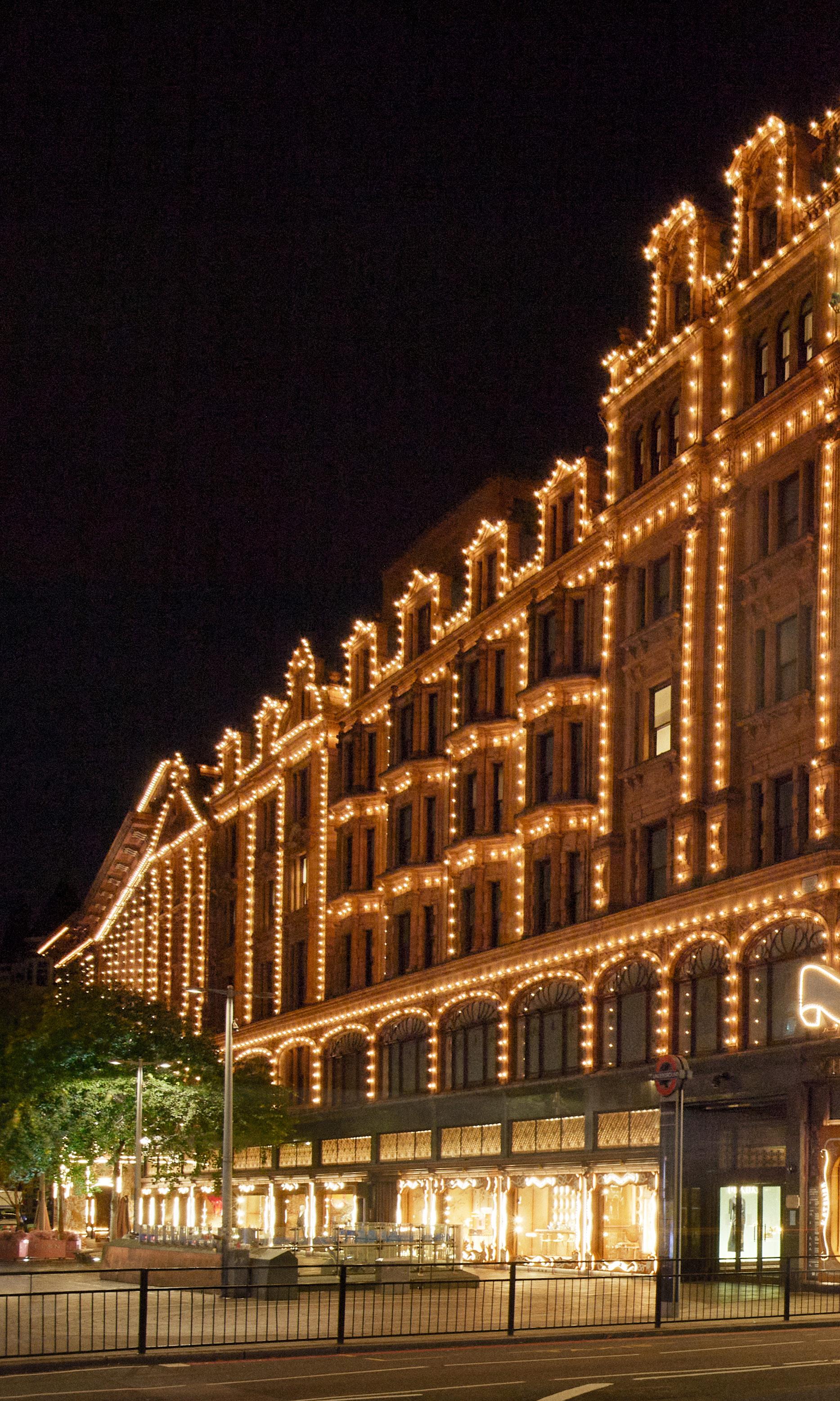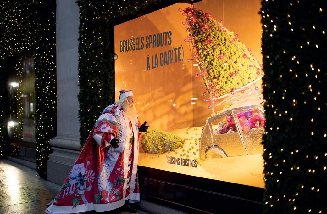 Like a magnetic Shepherd's Star, a central sculpture – erected to an impressive height of seventeen meters, the building's largest structure to date – seemed to dance in front of the dome of the British department store, guiding visitors within. A few steps away, on Hans Crescent, the entrance at Door n°5 was ornamentally crowned in turn by a majestic forest of biscuit fir trees. Lighting up the Knightsbridge district with an iridescent halo, this striking tableau invited young and old to suspend time and bask in the thrilling experience of the moment.