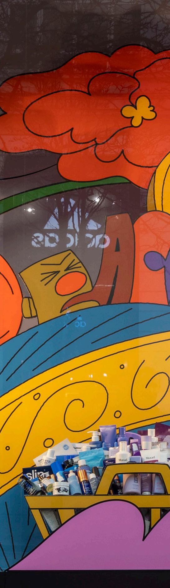 n a world flooded with hyper-connection and the multi-sensory, 2D illustration is having a moment in the spotlight across all Selfridges categories. Four talented female artists and illustrators Angela Kirkwood, Paulina Almira, Brindha Kumar and Lena Yokoyama have been commissioned to interpret special Selfridges destinations including the beauty concierge, skate bowl, brasserie, bar, opticians and other parts of the store encouraging shoppers in. Each illustrator has a clear and different style which also adds to the diversity of the visual merchandising concept.