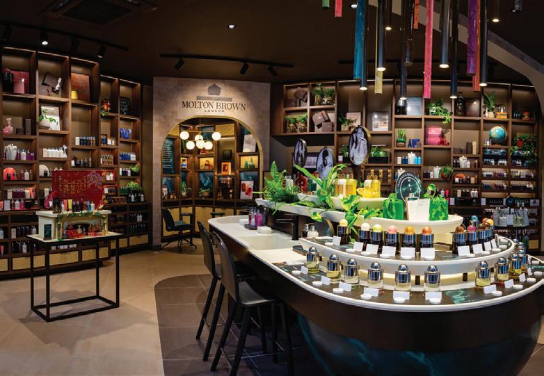 Sustainable solutions are at the heart of the redesign, flourishing plants help purify the air, including a herb garden, grown using a method called ‘hydroponics’. This involves creating a controlled, pesticidefree environment with LED technology – the same way we’re growing the herbs in our Botanical Hair Care collection. The ‘Return. Recycle. Reward.’ scheme means you can bring back your Molton Brown plastic bottles to recycle while customers enjoy 10% off your next purchase as a reward.
