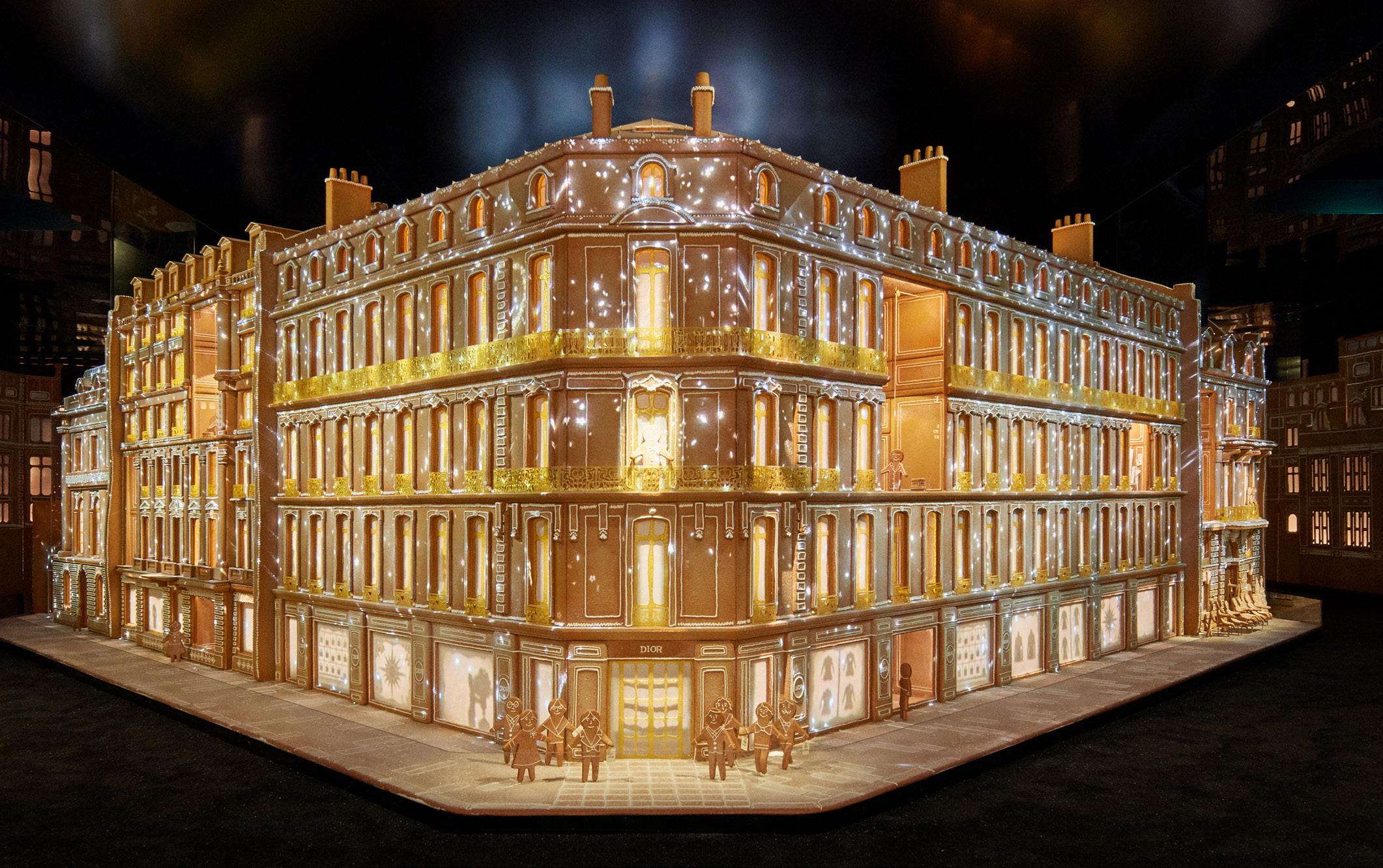 A tribute to the enthralling moments that brighten winter, an unparalleled new scenography, reflecting the passionate creativity of Dior, reinvented the forty-four traditional Christmas windows of Harrods. An exaltation of end-of-year festive magic, through the House's symbols and diverse universes. For the first time in the history of the department store, each of these iconic displays – from Brompton Road to Hans Crescent, via part of Basil Street – was converted into a small theatre of wonder, with scenery made of gingerbread – an essential English Christmas treat – punctuated by mouldings and details sculpted in sugar and caramel, tickling the fancy of those with a sweet tooth and expanding the imagination of all.