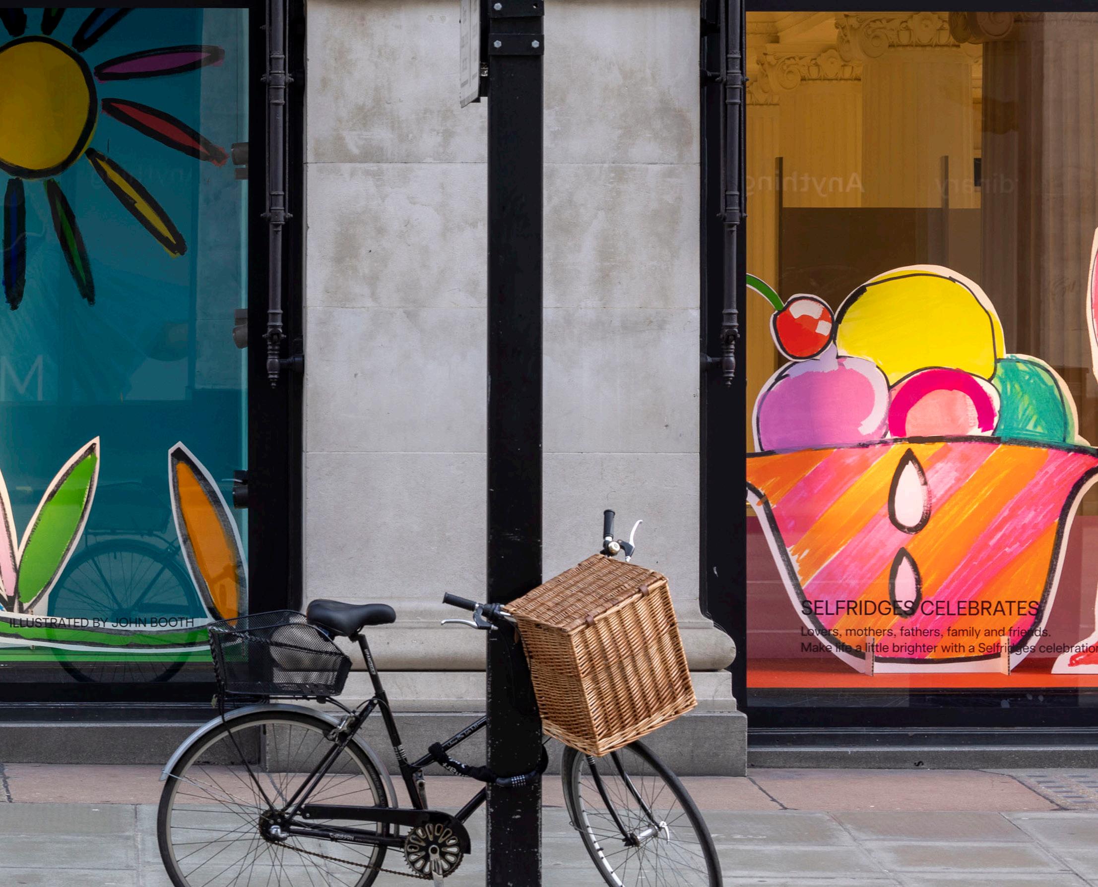 A special commission by John Booth in Selfridges flagship Oxford Street windows on the corners of Oxford Street and Orchard Street invites customers to explore playful interpretations of what celebration means to them.