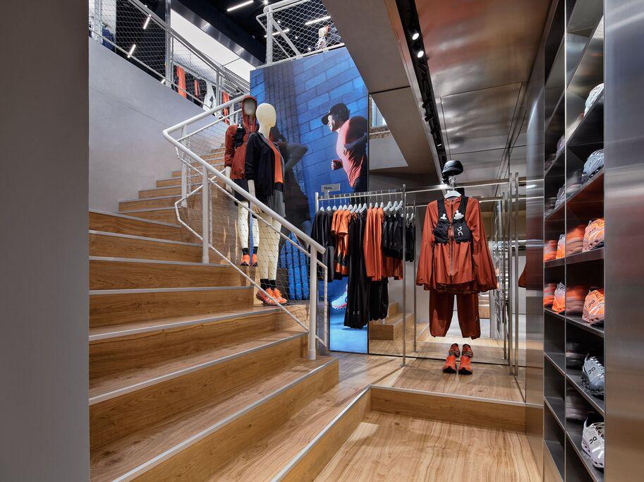 To share the excitement for revolutionary solutions, various installations showcase the technologies, materials, and values that make On popular worldwide - including unique soles, sustainable materials, and athletes with big dreams. By way of the central wooden staircase on the ground floor, visitors descend to the basement where a generous skylight casts natural light onto the collections. Thanks to the advanced setup, customers can effortlessly find the right shoes, clothing, and accessories for any activity.