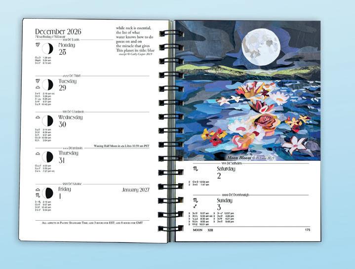 “Modern culture and the We’Moon calendar, as timely as ever. This is so much more than a calendar. It is a resource—a way of focusing the direction of your days on positive living. The poetry and art always inform, inspire, and profoundly impress.” —Vision Magazine WE Datebooks • Cards • Wall Calendars Free shipping on 40 or more! sue@wemoon.ws • 503.288.3588 • wemoon.ws We’Moon 2026 : Full CirCle