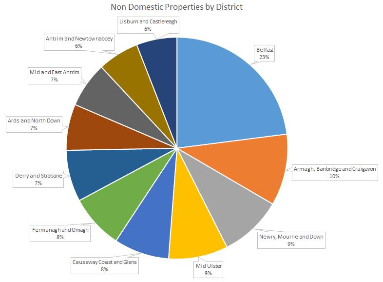 Armagh 7,765 £142,741,722 -£4,301,783 -0.03 Belfast 16,909 £522,238,926 -£1,964,502 0.00 Causeway Coast and Glens 6,077 £99,481,075 £2,565,175 0.03 Derry City and Strabane 5,621 £125,809,752 -£3,269,204 -0.03 Fermanagh and Omagh 5,927 £101,931,896 -£1,869,957 -0.02 Lisburn and Castlereagh 4,438 £133,813,580 £2,624,498 0.02 Mid and East Antrim 4,938 £98,795,547 -£1,921,205 -0.02 Mid Ulster 6,530 £108,490,312 £2,001,466 0.02 Newry, Mourne and Down 6,865 £114,723,656 -£6,012,083 -0.05 Northern Ireland 74,599 £1,677,967,130 -£16,109,520 -0.01