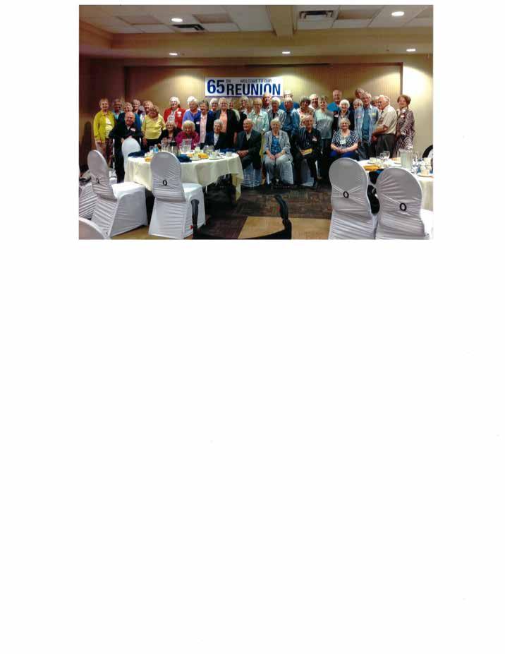 Elaine Wall Rex proclaimed our 65th reunion a resounding success and closed our event with a fond farewell, not goodbye! She reminded us that, although we are in our autumn years, we still have much to contribute, each in our own way. n