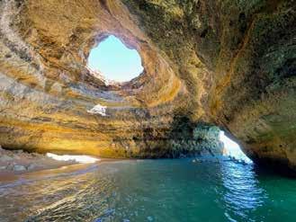 One afternoon, we joined a boat tour to the Benagil Caves. As we sailed along the coast, we passed dramatic sea caves and limestone arches, their shapes sculpted by centuries of waves and wind. The Benagil cave is interconnected with other caves and big enough for some boats to enter it. It was a magical, almost surreal experience looking at what nature had carved out. The echoing sound of waves within the cave created a meditative atmosphere that we will remember for a long time.