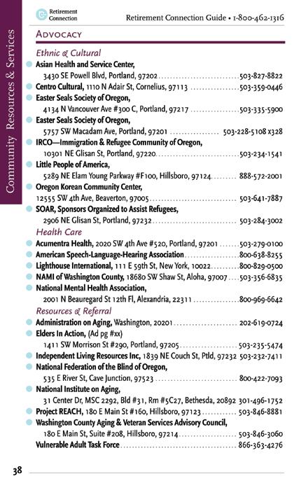 My advice? Be gentle with yourself. Change takes time. Plan ahead when you can, ask questions, and lean on those around you. The providers we work with are dedicated to serving seniors and their families, offering care and guidance in every season of life. When the unexpected happens, know that resources like CareAvailability.com and this guide are here to support you, just as they have for me. Retirement Connection is provided free of charge because our sponsors/ advertisers have provided financial support to maintain and update the guide and the website. Please return the favor by contacting our sponsors when you encounter a need. If your physician’s office, church, or other organization would like additional copies, we are happy to provide these at no cost. Please call us, visit our websites or email us at: mktg@RetirementConnection.com to order as many as you need.