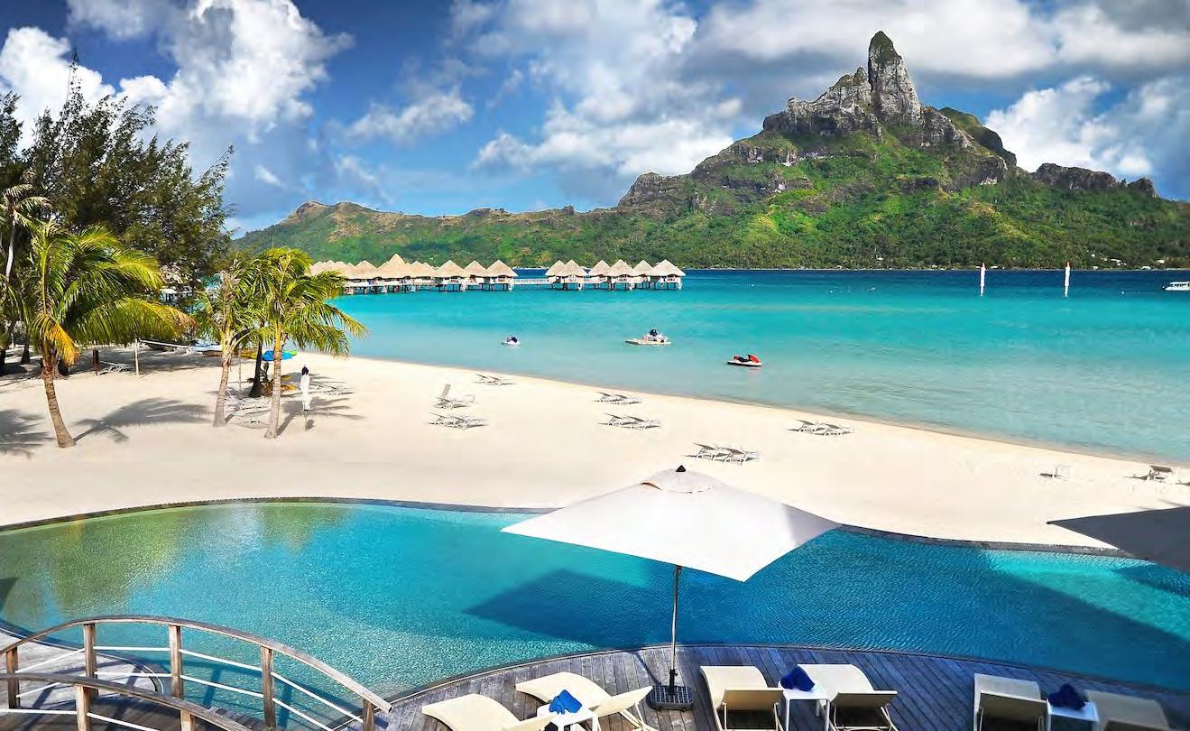 The Lagoonarium Pool at Le Meridien Bora Bora is a true oasis in the middle of the South Pacific. With its crystalclear waters and stunning views of Mount Otemanu, this pool offers the ultimate in luxury and relaxation. For a chic look, pair a bold one-piece swimsuit with a sarong and over sized sunglasses to complete your tropical paradise vibe.