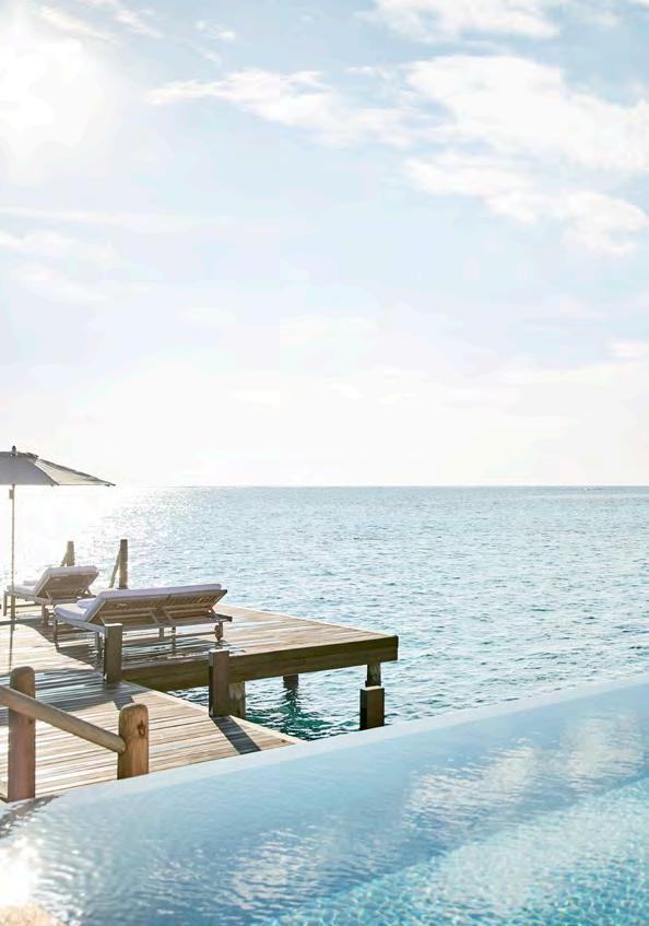 The Lagoon Pool at Gili Lankanfushi Maldives offers stunning views of the turquoise waters of the Indian Ocean. With its over water location and luxurious amenities, this pool is the ultimate spot to relax and soak up the beauty of the Maldives. For a chic and stylish look, opt for a colourful bikini and a flowy cover-up, paired with a wide-brimmed hat and over sized sunglasses to complete your tropical island look.