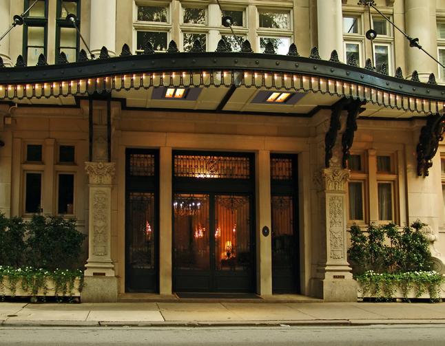 accentuates the entrance arch while sconces provide soft lighting in the main reception and rear office areas. Brass chandeliers and custom-illuminated marble slats lend sophistication to the space.